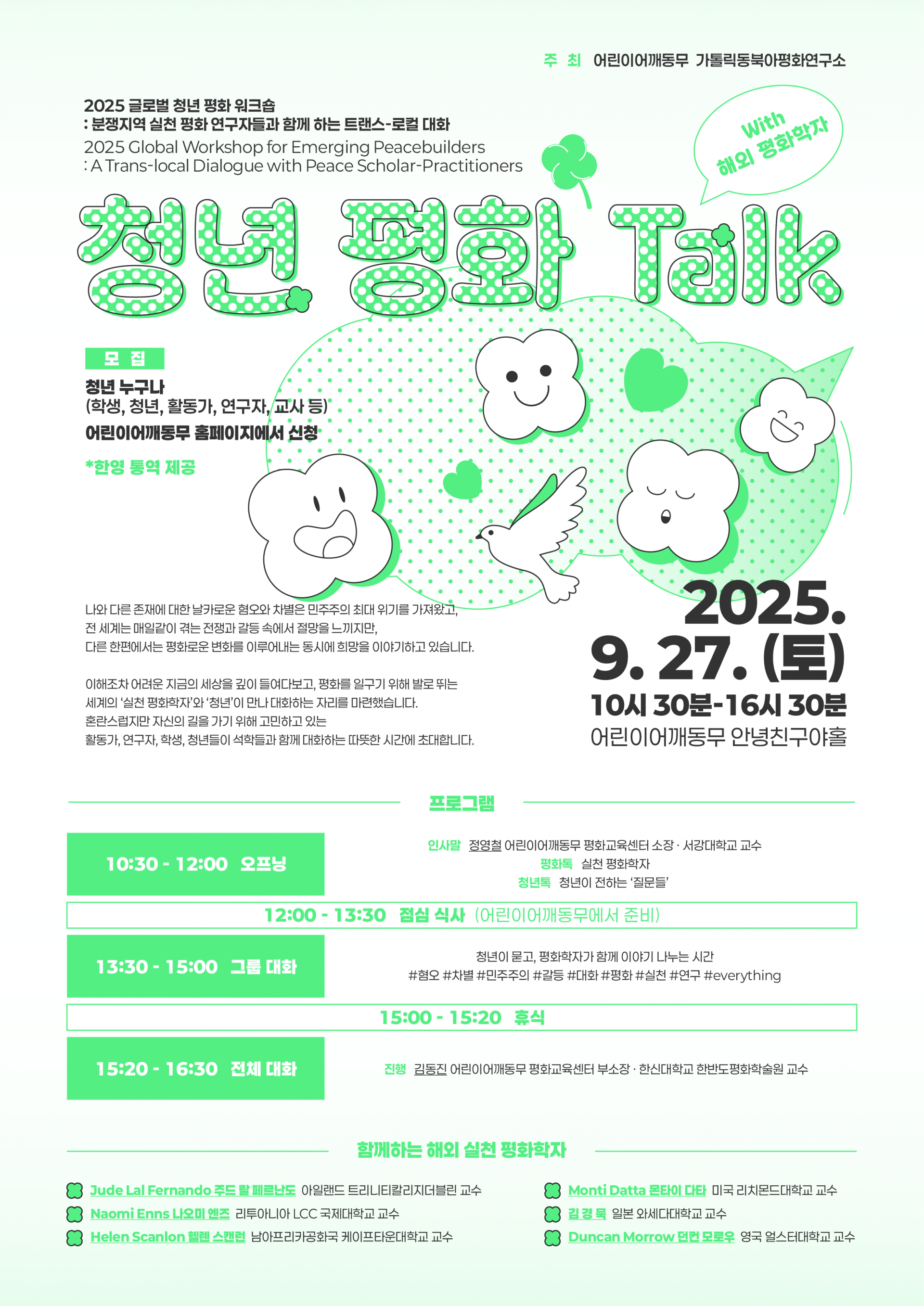 2025 글로벌 청년 평화 워크숍 : 분쟁지역 실천 평화 연구자들과 함께 하는 트랜스-로컬 대화