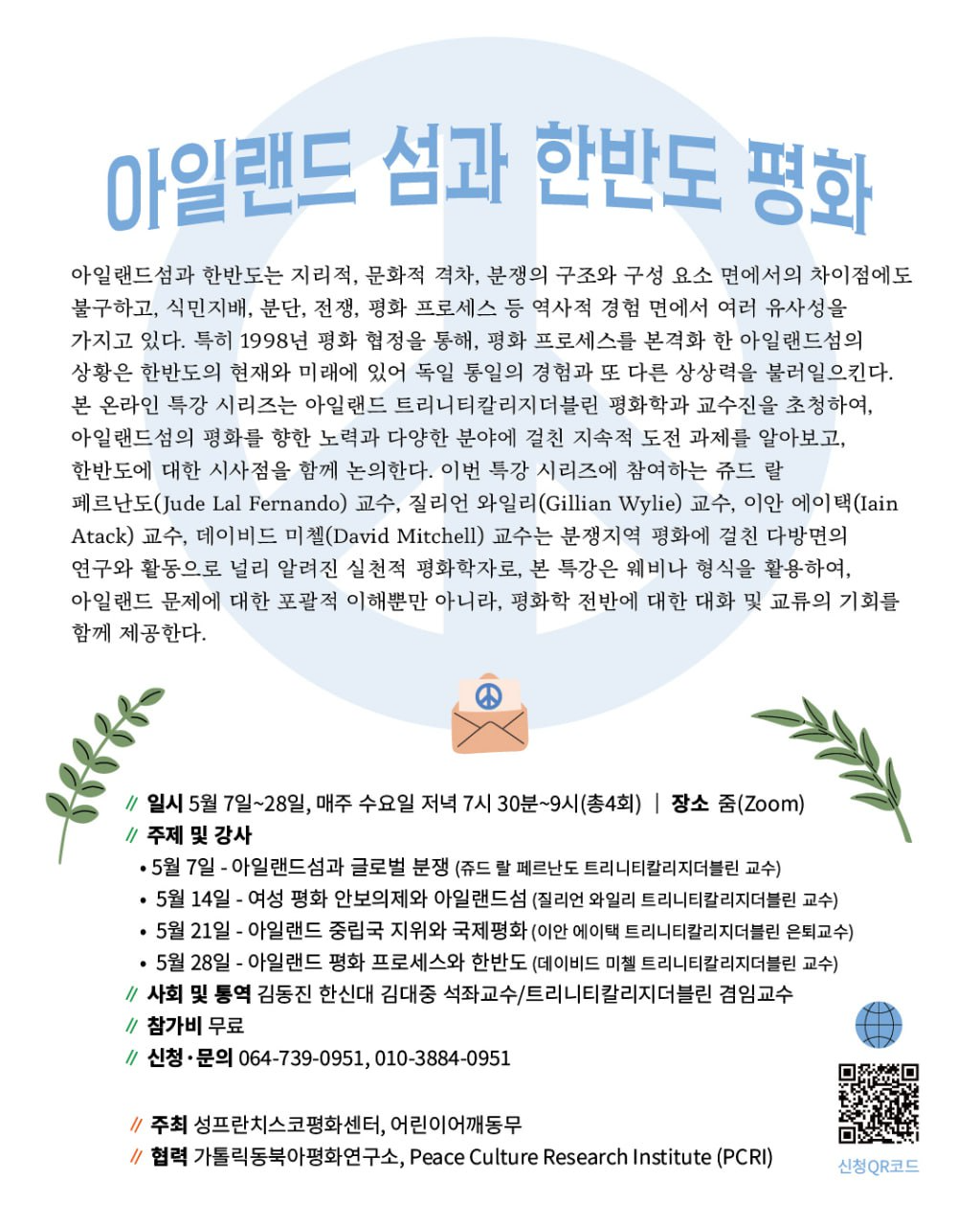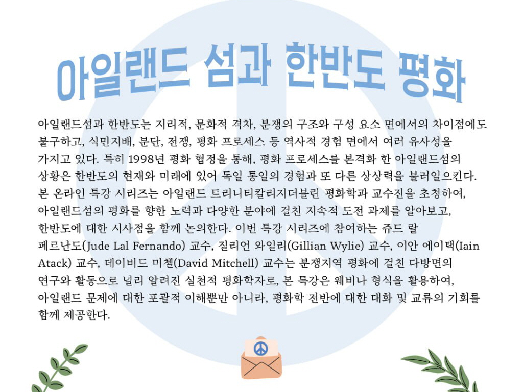 실천적 평화학자 온라인 특강 '아일랜드섬과 한반도 평화'