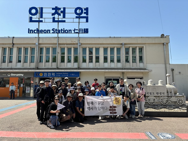 여정의 첫걸음은 인천역에서 시작했습니다. 기나긴 전철 1호선의 시작 역인 인천역에서 한반도 철도의 탄생과 그로 인해 바뀌어온 역사에 대한 이야기를 나누었습니다. 이곳에서 시작된 철도(경인선)의 사회적 영향을 통해 우리는 한반도가 식민지화되는 과정을 입체적으로 이해할 수 있었습니다. 이어서 교통망의 변화가 현대 사회에 미치는 영향과 균형발전에 대한 고민도 함께 나누어 보았습니다.