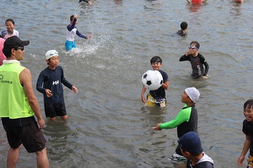 평화를 이야기 하는 것도, 동아시아의 친구들과 뛰어 노는 것도 모두 중요하지만 캠프에 참여한 어린이들이 가장 중요하게 생각하게 포인트는 바로 바로 바로 바로 물놀이!!!! 몇 년 전 비가 와서 물놀이를 못할까봐 걱정하며 지속적으로 ‘물놀이 할 수 있어요?’ 물어보던 친구들의 얼굴도 기억이 납니다. 이번 캠프에서는 비 걱정 없이 신나게 물놀이를 할 수 있었습니다. 공하나만 있어도, 공이 없어도 즐겁습니다. 물놀이하면서 먹는 간식은 언제나 꿀맛이기도 하답니다.