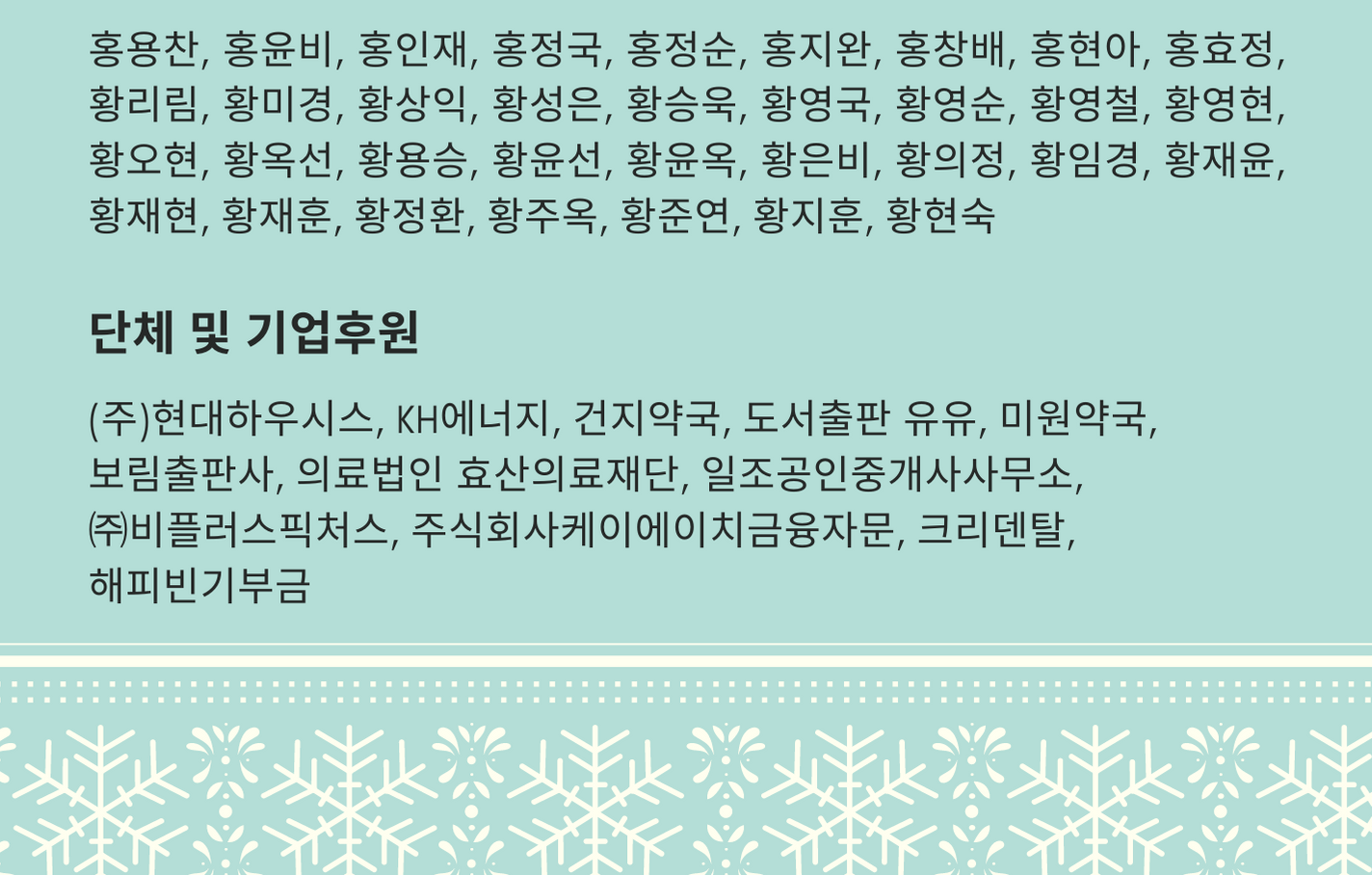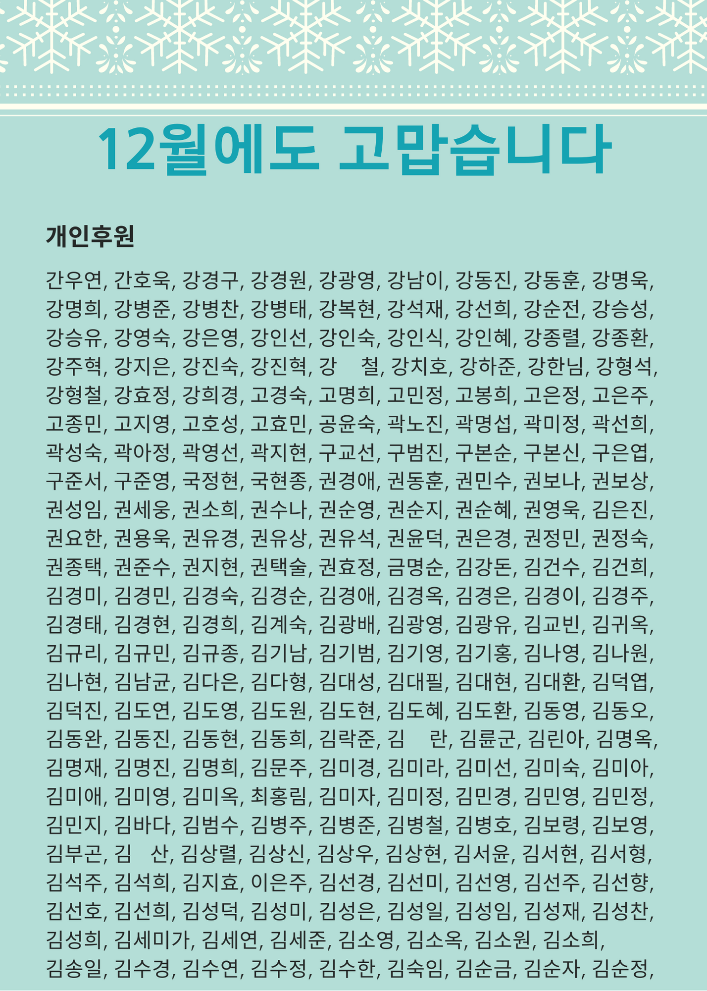 후원 명단에 빠지신 분은 사무국으로 연락주시길 바랍니다.