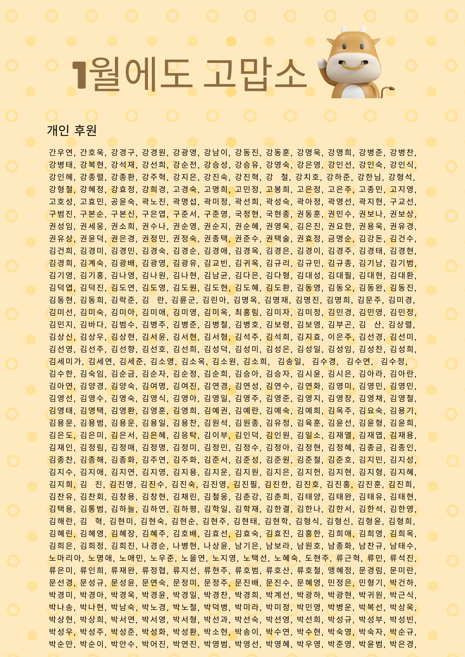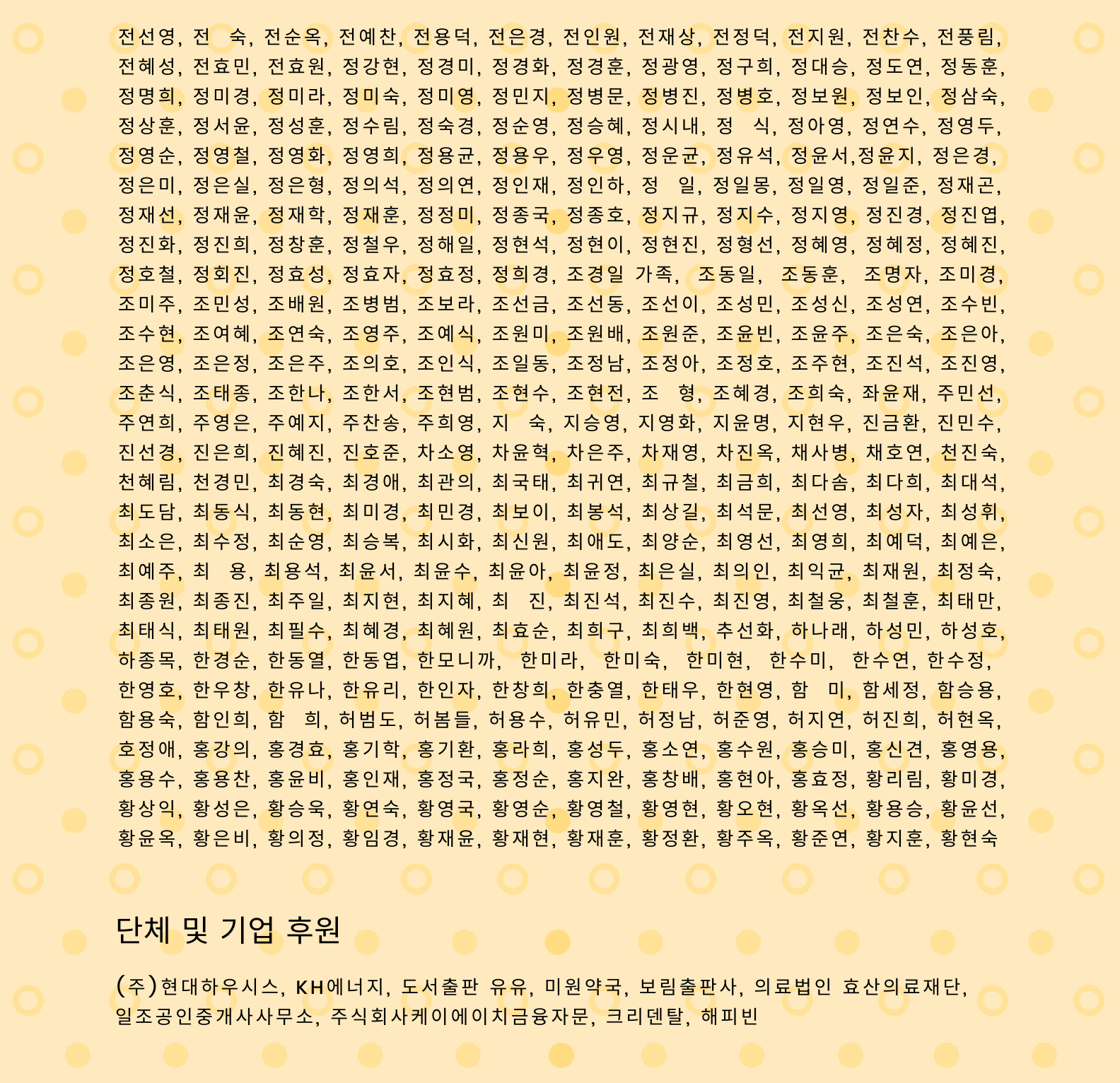 후원 명단에 빠지신 분은 사무국으로 연락주시길 바랍니다.
