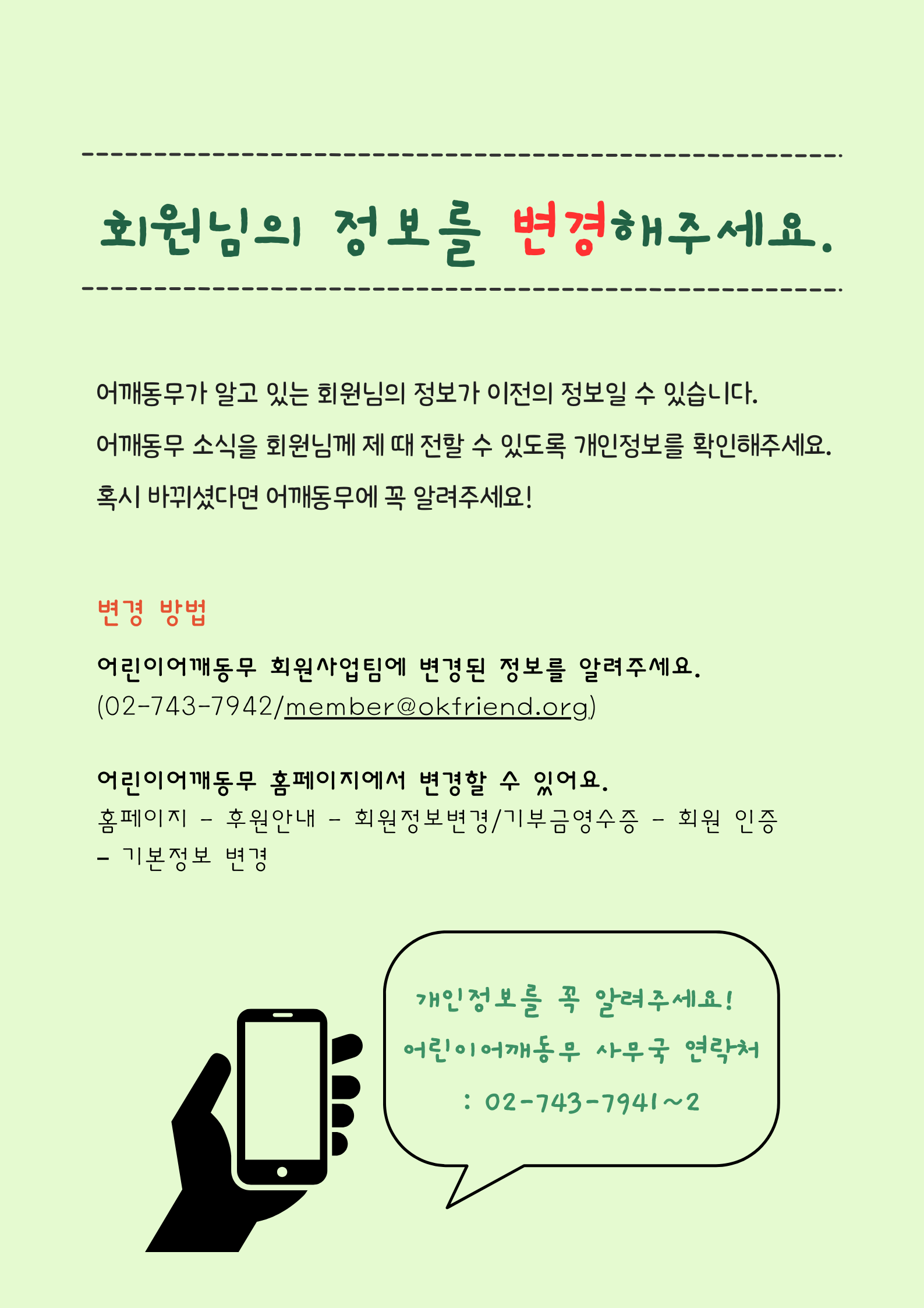 후원계좌: 하나은행 555-810001-36304 (예금주: (사)어린이어깨동무)
